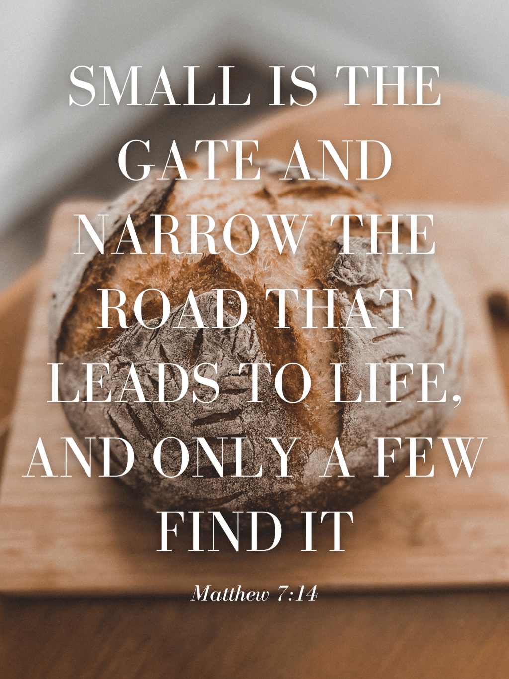 “Enter through the narrow gate. For wide is the gate and broad is the road that leads to destruction, and many enter through it. But small is the gate and narrow the road that leads to life, and only a few find it.”